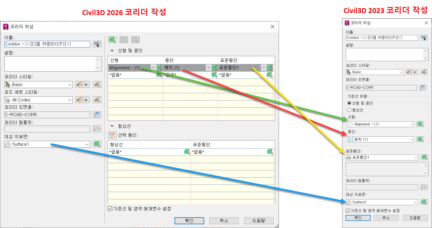 참고로 2023버젼에 Civil3D 코리더 설정관련해서는 아래 링크에 내용도 함께 참고하여 주시기 바랍니다.