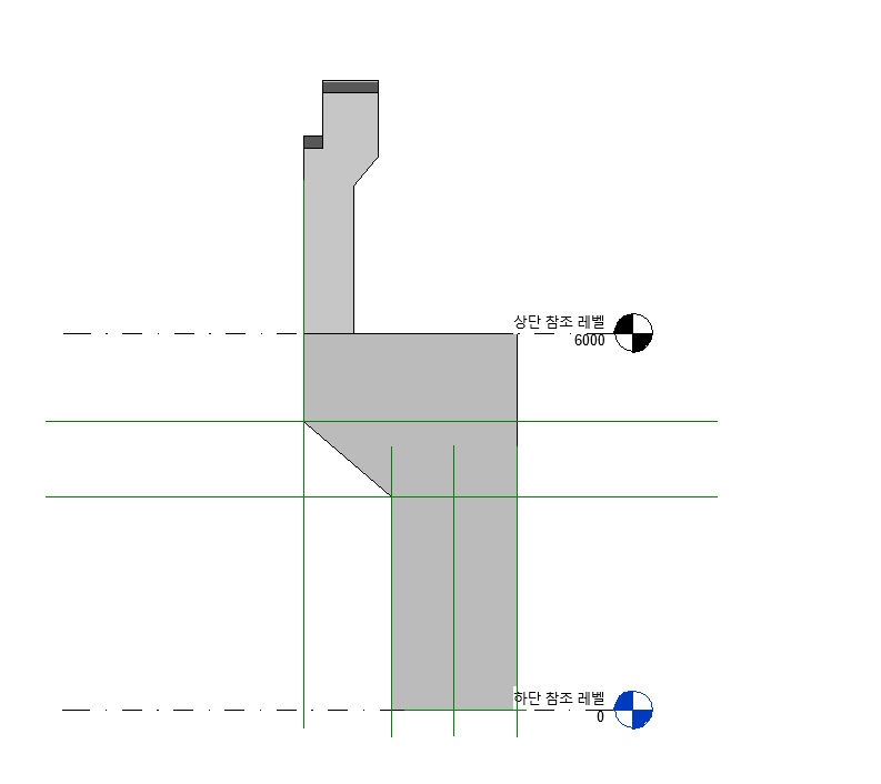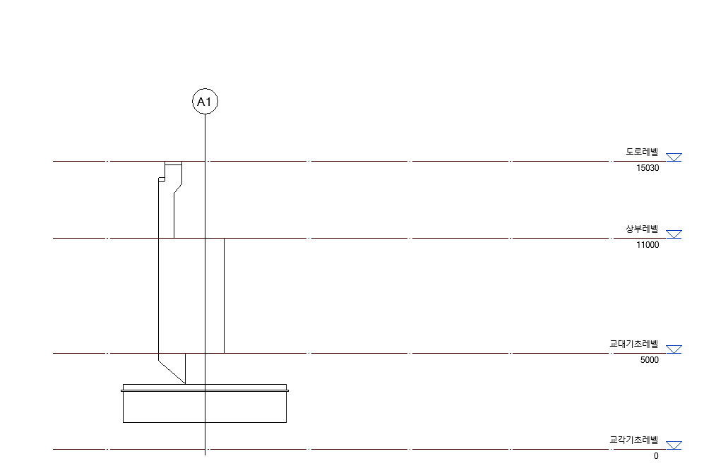 패밀리를 배치할때 교대기초에서 작업했고, 높이로 설정해서 상부레벨로 선택했습니다.