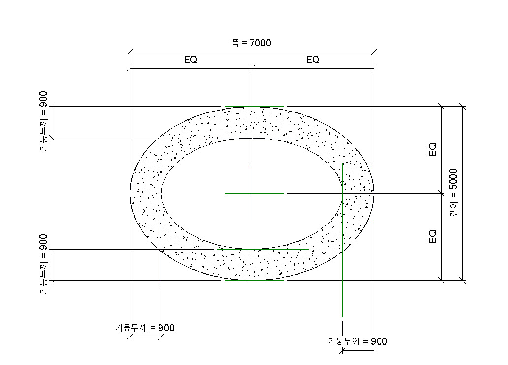 즉 교각 기둥 내부 치수를 표현하려면, 패밀리에서 참조평면을 추가해 치수 기준으로 활용해 보시기 바랍니다.