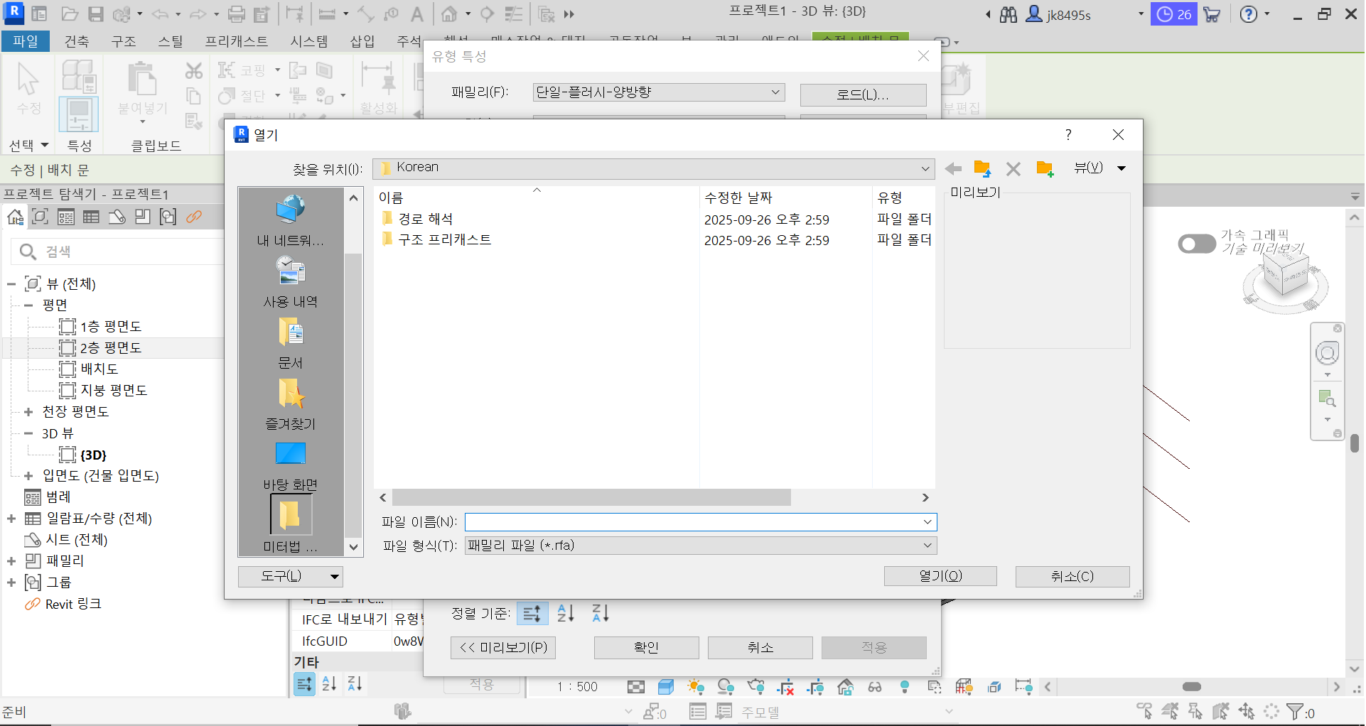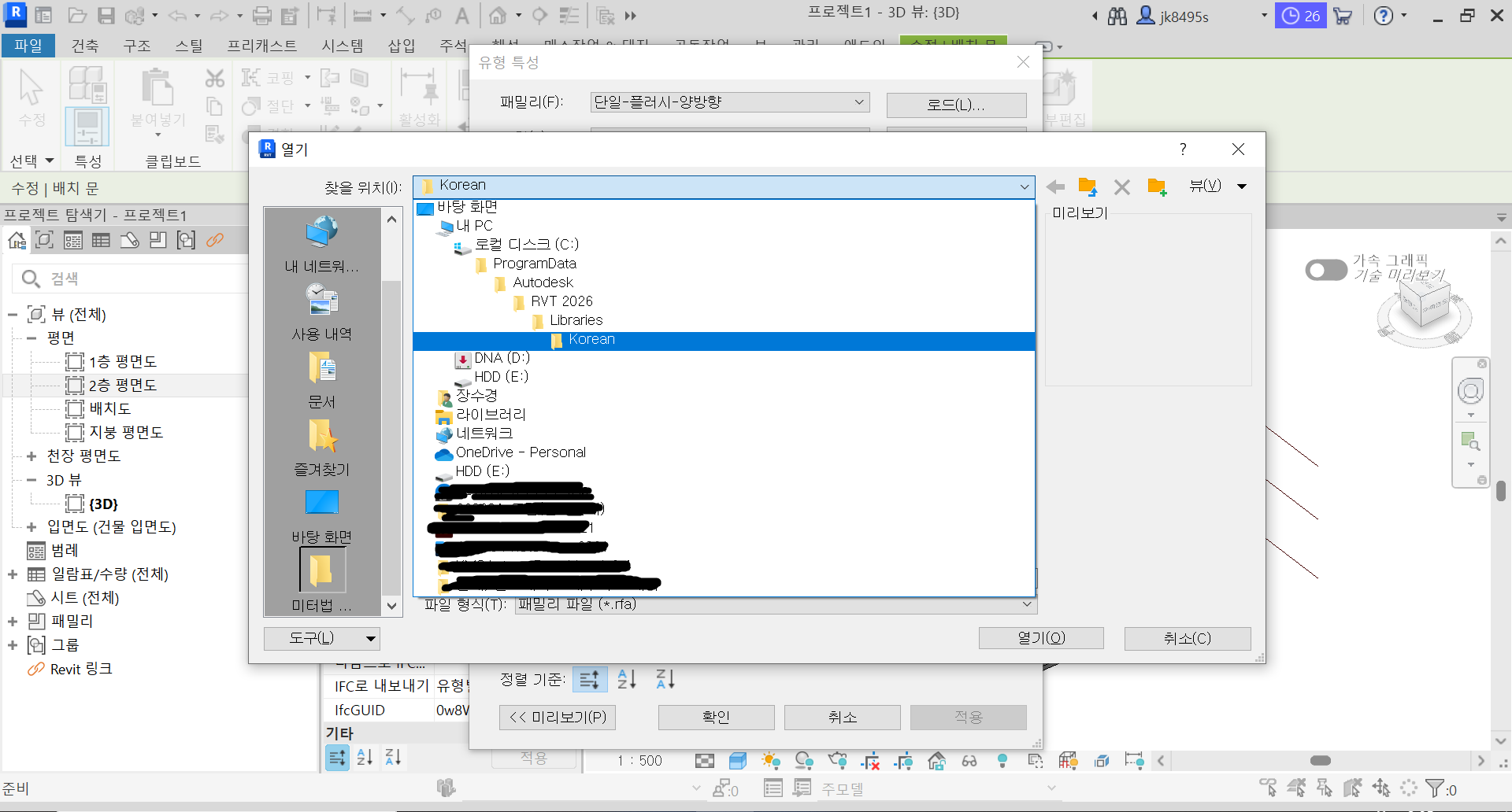 유형선택하기 위해 레빗에서 제공하는 기본적인 패밀리 라이브러리 폴더에 들어가면