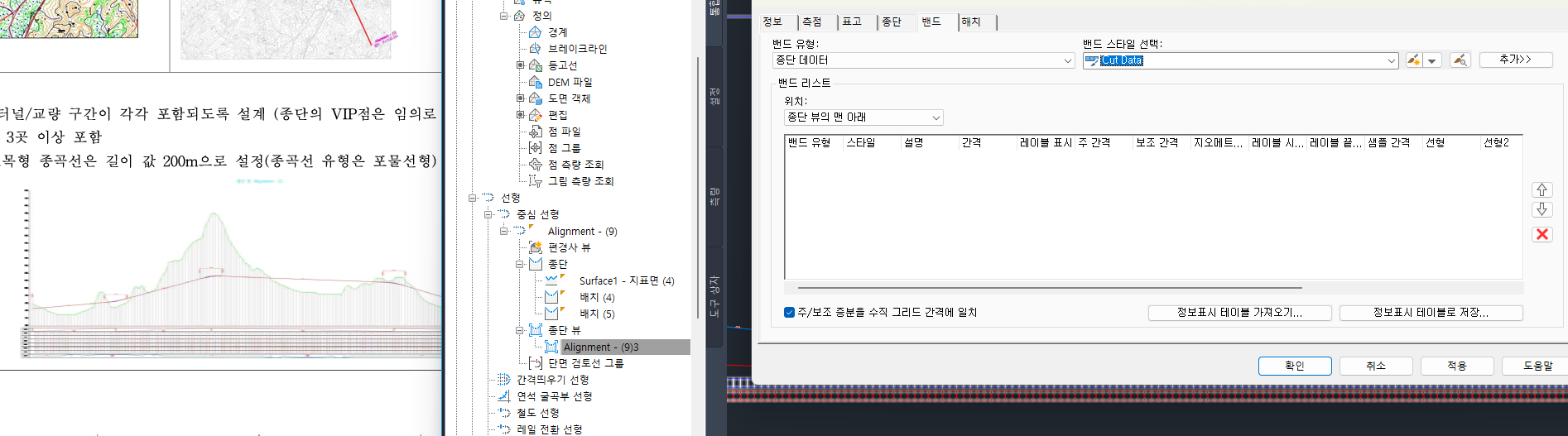 터널과 교량 구간은 교재 및 인강에서와 같이 종단 계획이 설계되었다면,