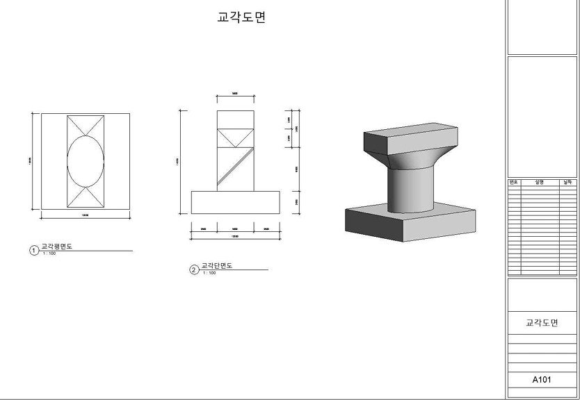 공개문제에서는 교각 기둥은 원 형태로 도면이 제시되어 있습니다.