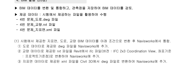 6. 여기서 말하는 xml파일은 시험 때 주어지는 파일인지 궁금합니다. dwg로 변환하라 했을 때 civil 3d에서 land XML 가져오기 하여 다른이름으로 저장만 하여 변환하면 되는 것인지 궁금합니다. 그러고 파일을 추가추가하여 나비스웍에서 진행하면 되는 것인지 궁금합니다. 예제 파일로 변환, 추가하여 실습하려고 했으나 파일을 잘못 선택한 탓인지 추가해도 파일이 안보여서 어떤식으로 실습을 해야할 지 잘 모르겠습니다.
