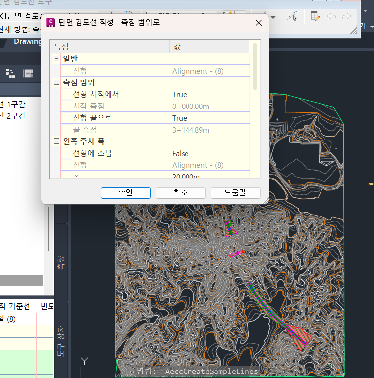 7. 터널 재료 일람표 작성시 라이닝 측벽부는 목록에 없는데, 재료가 콘크리트가 아닌 것입니까? 아니면 따로 필터 설정하는 방법이 있는 것인지 궁금합니다.