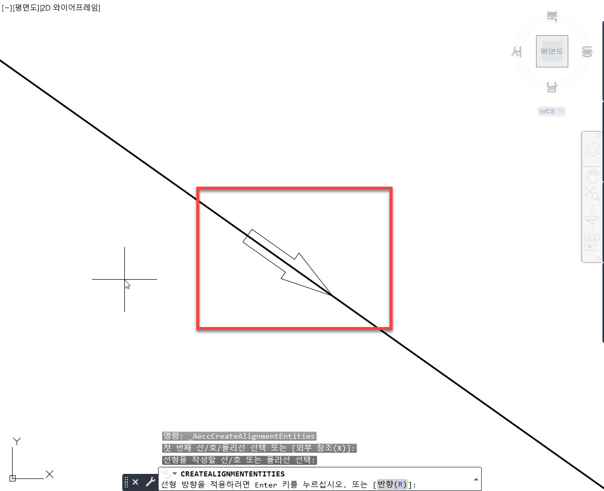 이렇게 설계자가 원하는 선형의 진행 방향을 확인한 후, 필요에 따라 반향을 설정하시면 됩니다.