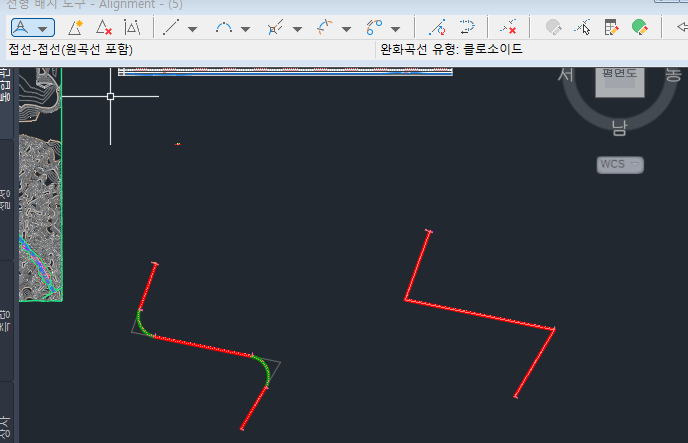 그래서 폴리선에서 선형 작성으로 그렸더니 첫번 째 그림처럼 원곡선이 잘 나타납니다.