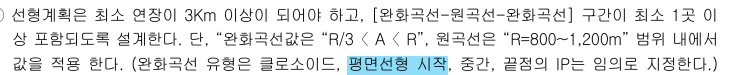 선형 작성 시 입력한 원곡선, 클로소이드 값 범위 내에서만 곡선이 생성됩니다.
