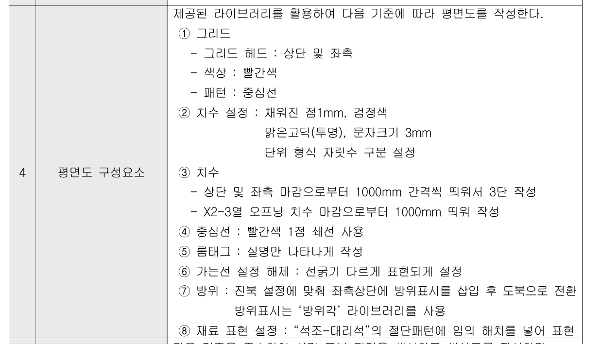 Q3. 4.평면도 구성요소 -4)중심선 : 빨간색 1점 쇄선 사용은 그리드와 다른것인가요? 그럼 어떻게 설정해야하는 것인가요?