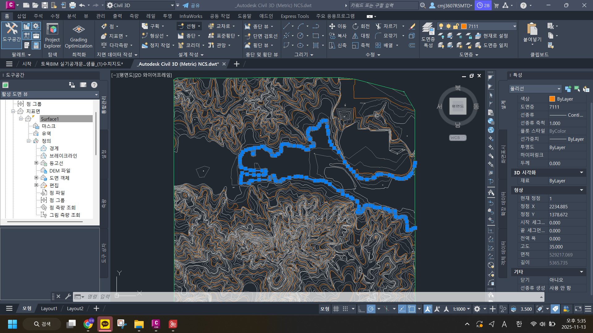 1. 새로만들기 -> 템플릿:AutoCAD Civil 3D (Metric)_jhchae.dwt 열기