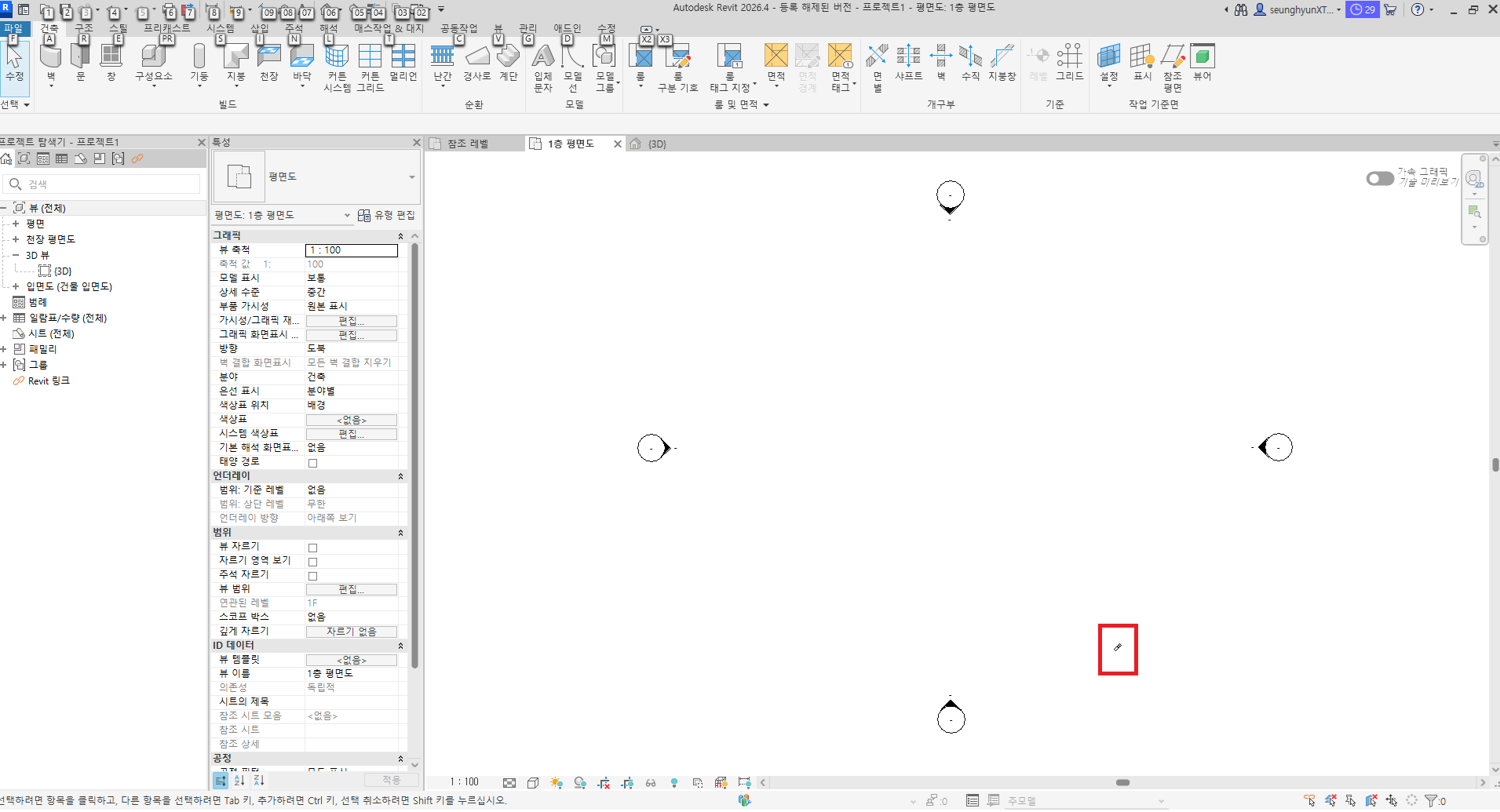 건축템플릿 사용시에는 불필요한 벽 객체는 삭제한 후 프로젝트를 진행하시기 바랍니다.