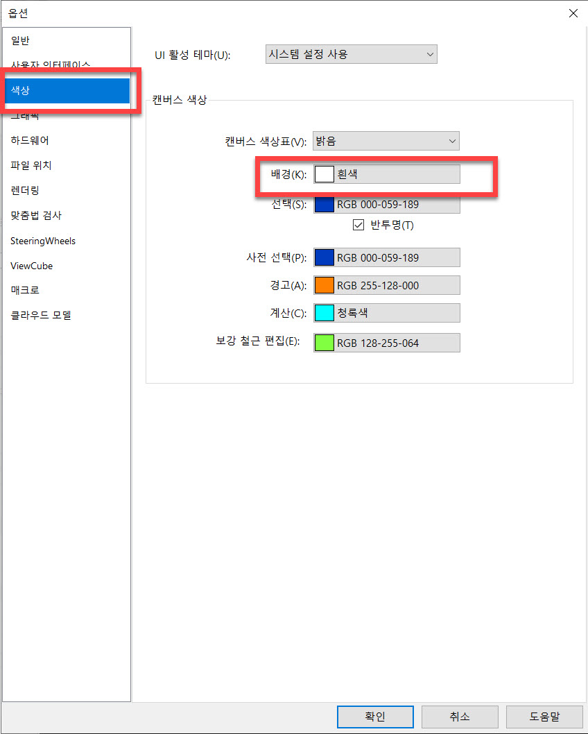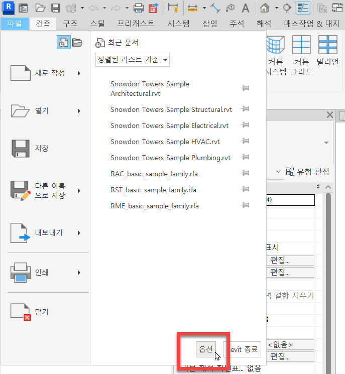 Revit 배경 색상은 [옵션] 설정에서 변경할 수 있습니다.