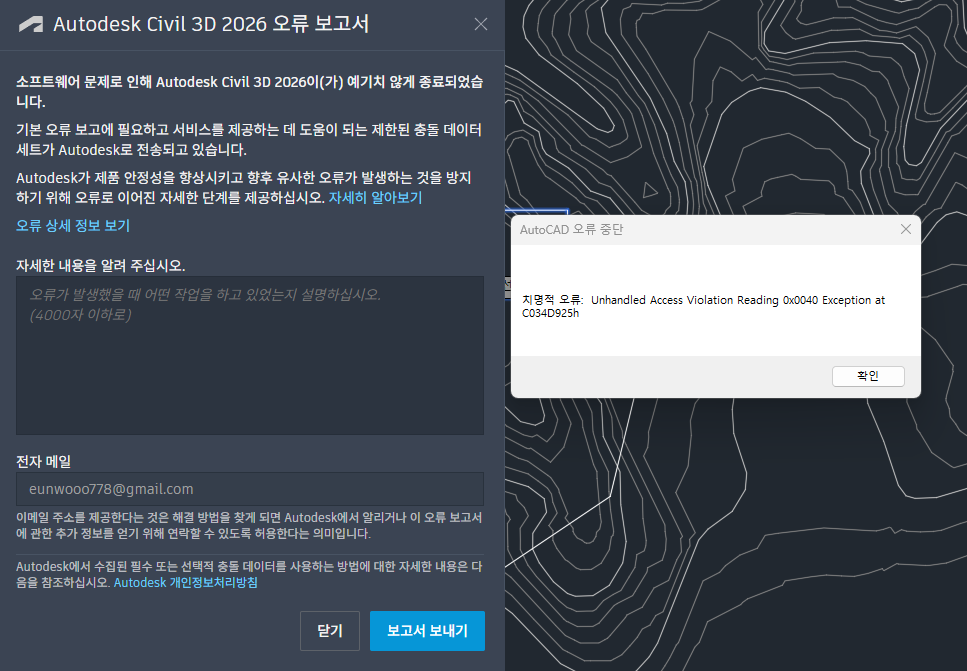 AutoCAD 및 Civil 3D의 업데이트 또는 재설치 진행이 필요해 보입니다.