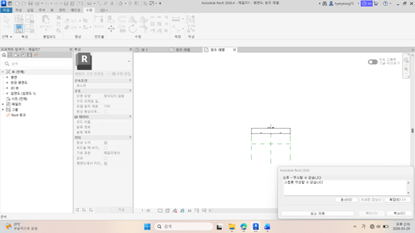 이러한 경우 Revit에서는 스윕을 생성할 수 없다는 오류 메시지를 표시됩니다.