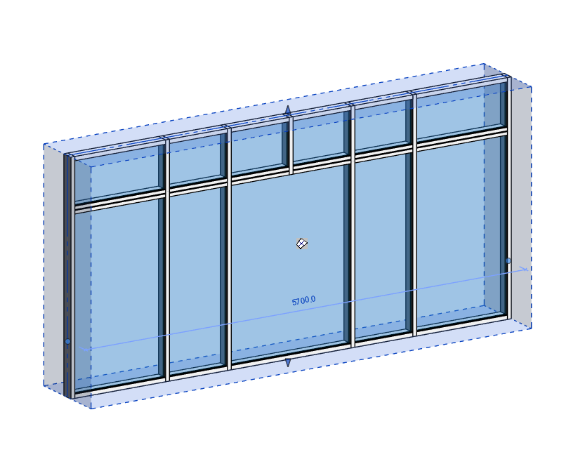 말씀하신 내용은 첨부한 이미지 기준으로 하단의 중간에 큰 패널을 선택하고, 유형 선택기에서 '커튼월 이중 유리' 유형으로 변경하면 됩니다.